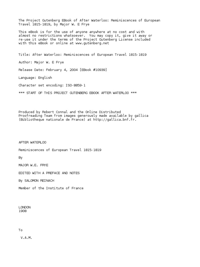 After Waterloo Reminiscences Of European Travel 1815 1819 By Frye Major W E Napoleon France Arthur Young Voyage En France Gallica